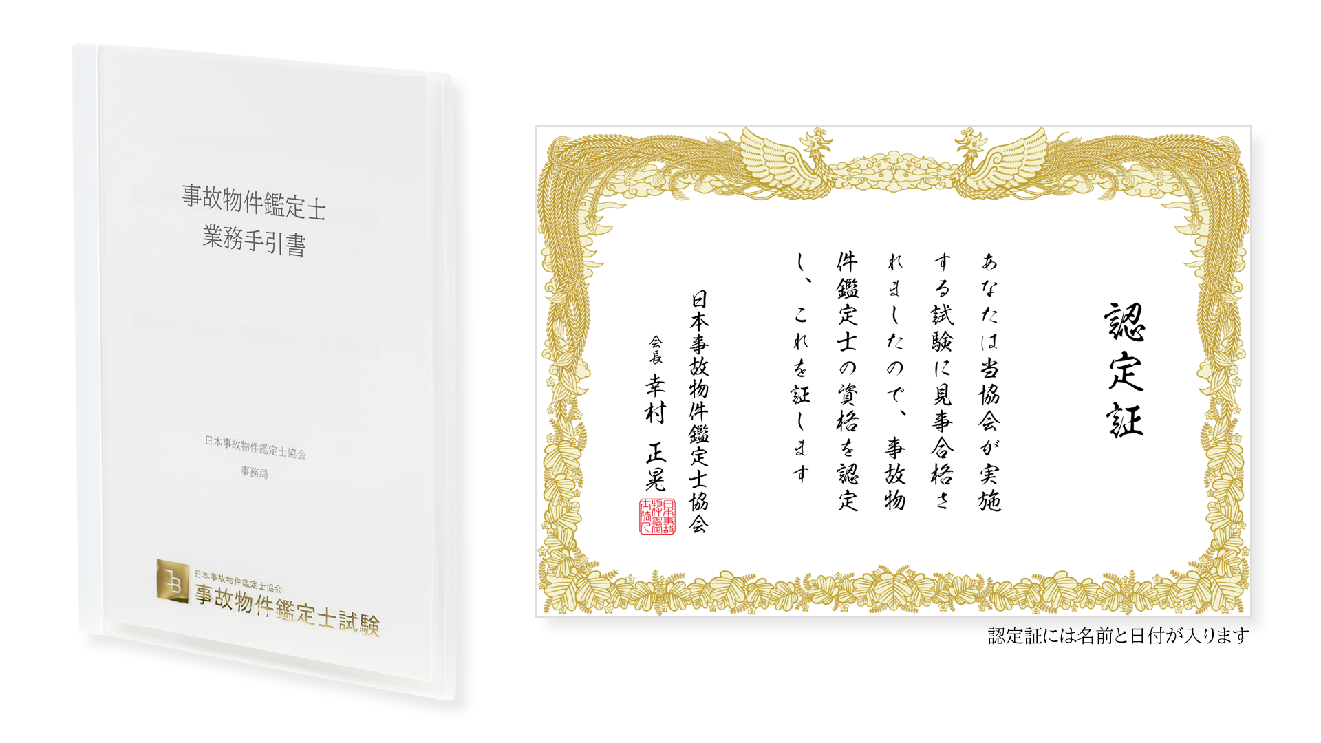 試験に合格をすると、名前入りの認定証と業務手引書が発行され、実際に事故物件鑑定士として活動を行っていただくことになります。